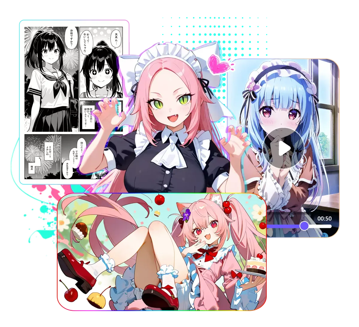 Common use cases include: Create anime characters from scratch, Generate manga panels quickly, Produce animated videos effortlessly.