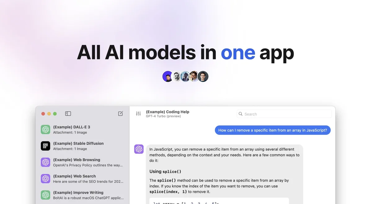 BoltAI is a high-performance AI app designed for Mac users. It streamlines your workflow by embedding AI tools directly into your daily tasks, making it perfect for anyone looking to boost productivity.