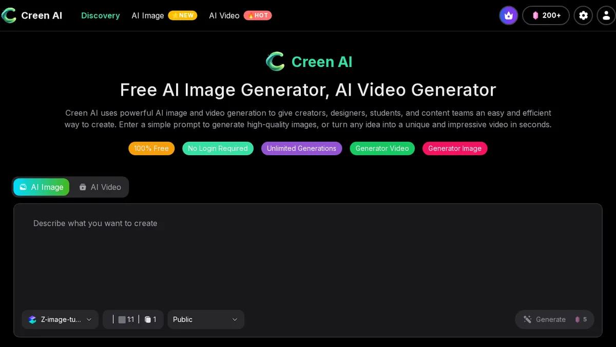 Creen AI is a free platform designed for anyone looking to generate eye-catching images and videos effortlessly. Whether you're an artist, marketer, or content creator, this tool unlocks endless creative possibilities with its AI-powered features.