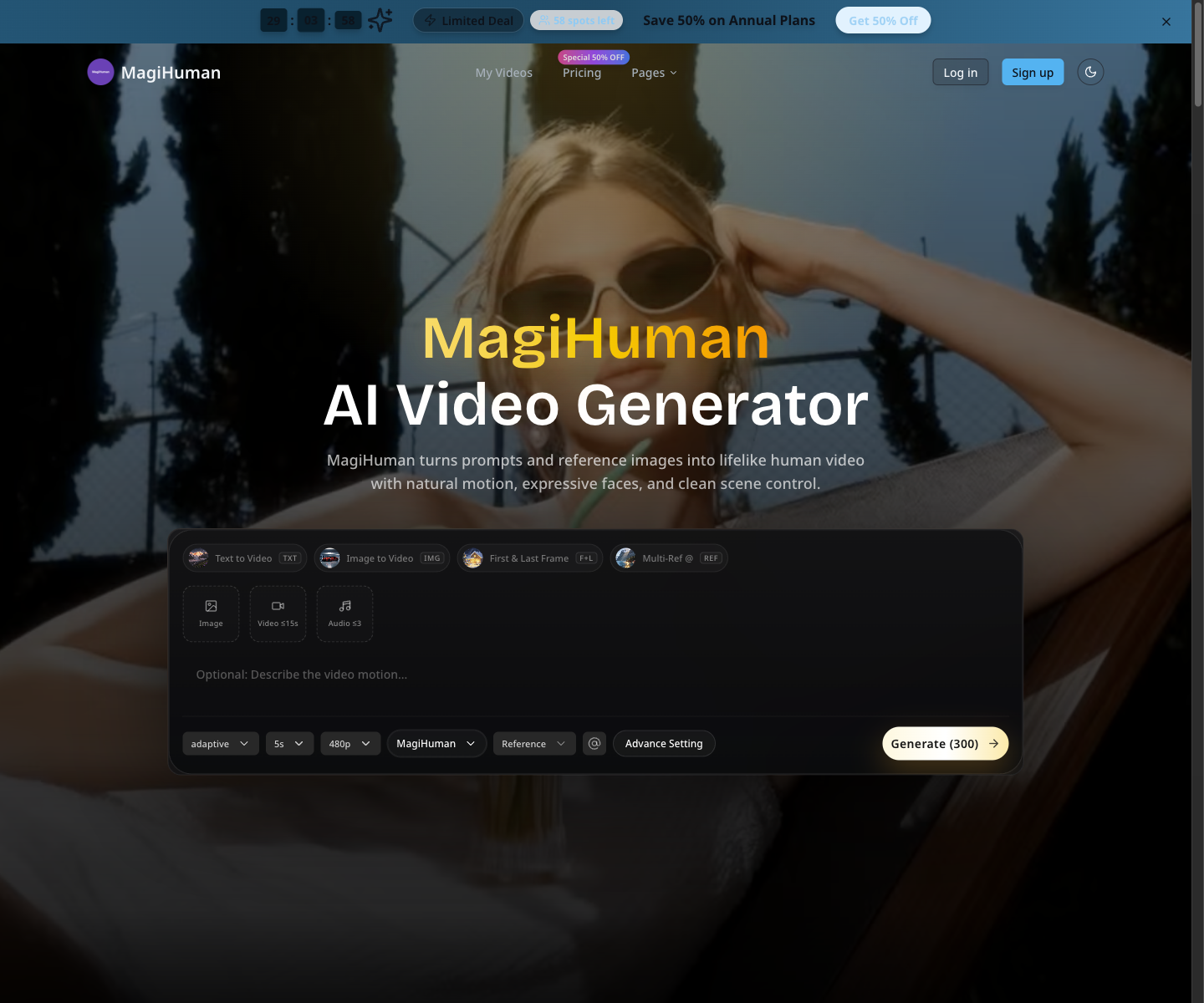 daVinci MagiHuman turns prompts and images into lifelike AI videos with natural motion, expressive faces, and fast browser-based generation.