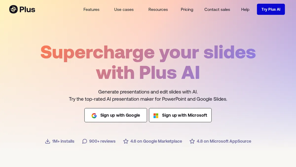 Plus AI is an AI presentation maker designed for professionals who need to craft impressive slides quickly. It works seamlessly with PowerPoint and Google Slides, making it easy to elevate your presentations without the hassle of starting from scratch.