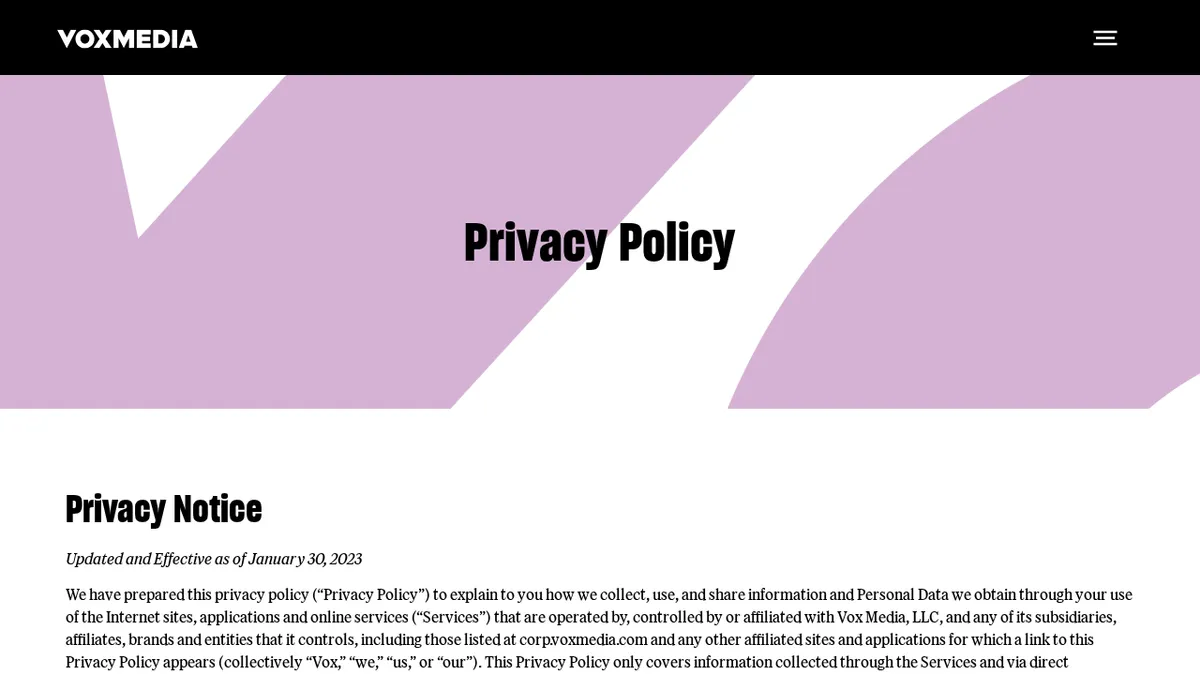 This privacy policy outlines how Vox Media collects and uses your data, making it essential for anyone concerned about their online privacy. It’s designed for users who want transparency regarding their personal information and data practices.