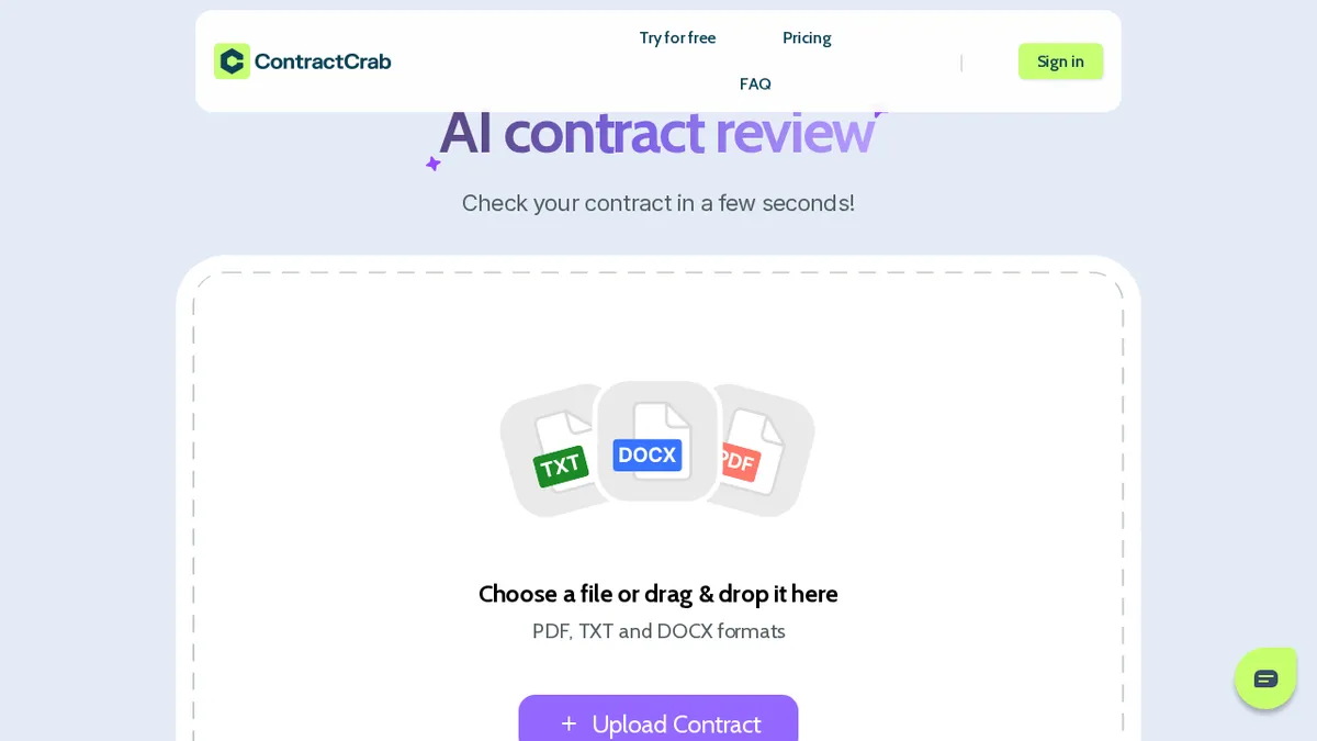 Get fast and precise contract summaries tailored for freelancers, small businesses, and students. ContractCrab helps you understand your agreements without the legal jargon, making it affordable and efficient.