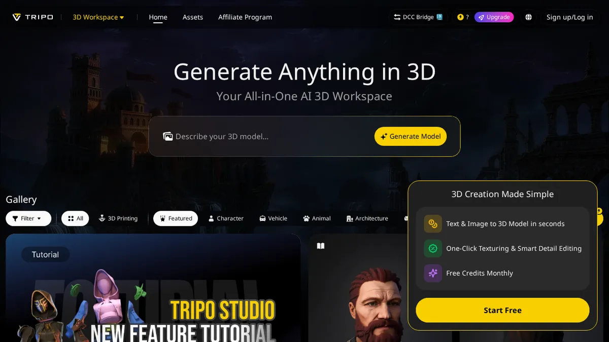 The best image / text to 3D model generator with all features: 3D generating, segmenting, texturing, rigging, retopology, stylization. Free and AI-powered. The best 3D model maker — create dreamlike 3D models from text or images fast and free with AI. Perfect for artists, game developers, VR/AR creators, and filmmakers.