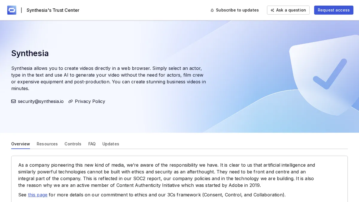 Vanta is available at Free Trial. Visit security.synthesia.io for the latest pricing details and available plans.