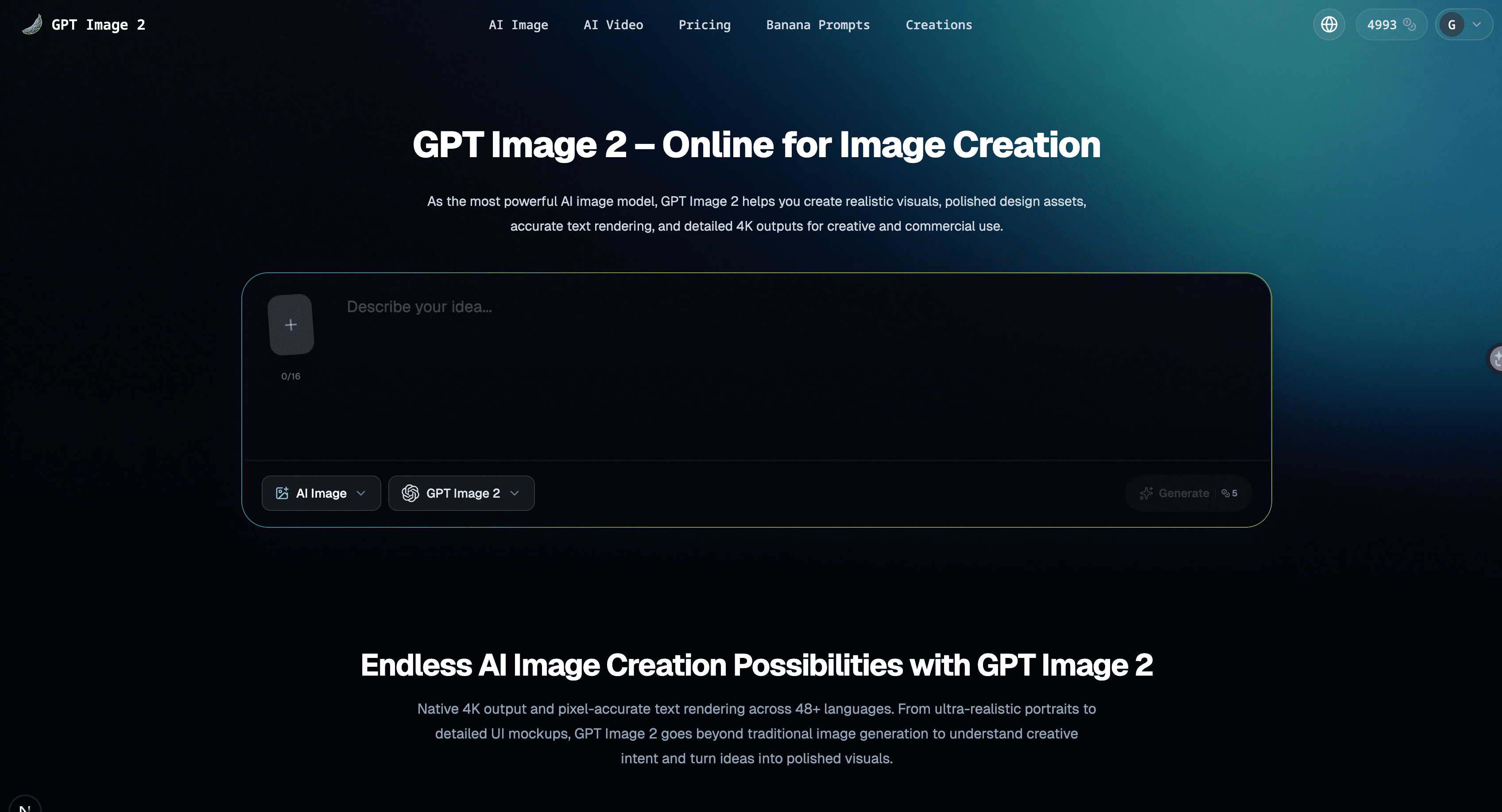 Try GPT Image 2 free online to generate stunning AI images, realistic photos, creative artwork, posters, and design assets in just a few seconds.